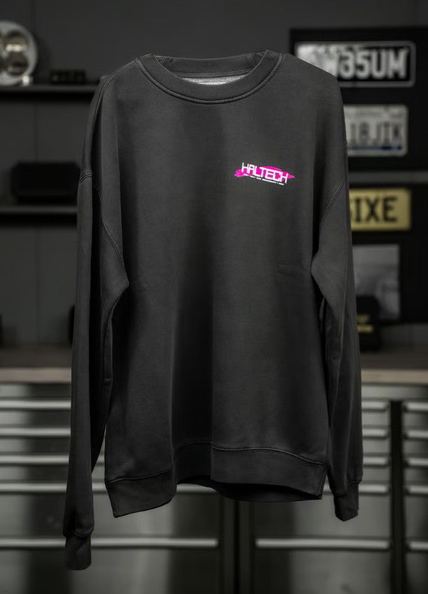 A clean black crewneck designed to mark Haltech's 40th year, featuring a subtle neon pink chest logo that adds contrast without overpowering the look. Made with a relaxed fit and premium fabric, it balances everyday comfort with a refined, understated style. A simple piece that quietly celebrates a meaningful milestone.
